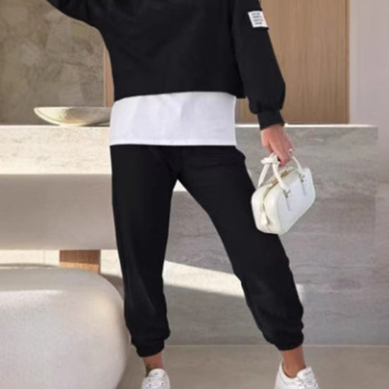 Abbigliamento casual, felpa con cappuccio e pantaloni da jogging.