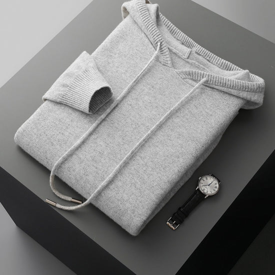 Men's Solid Color Loose Knitted Hooded Long Sleeve Base Sweater