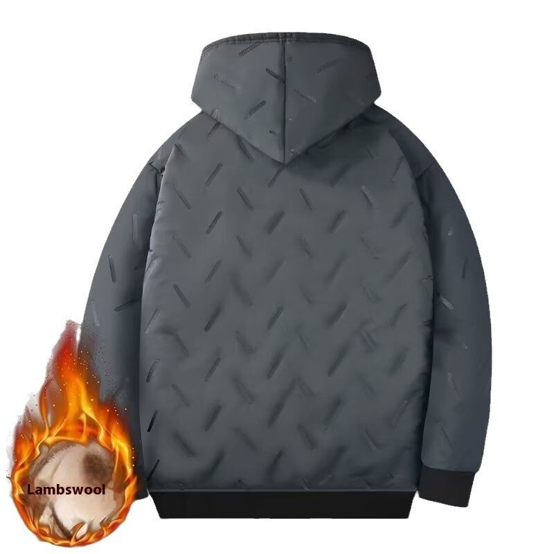 Cappotto invernale in pelle di agnello con cappuccio in cotone tinta unita